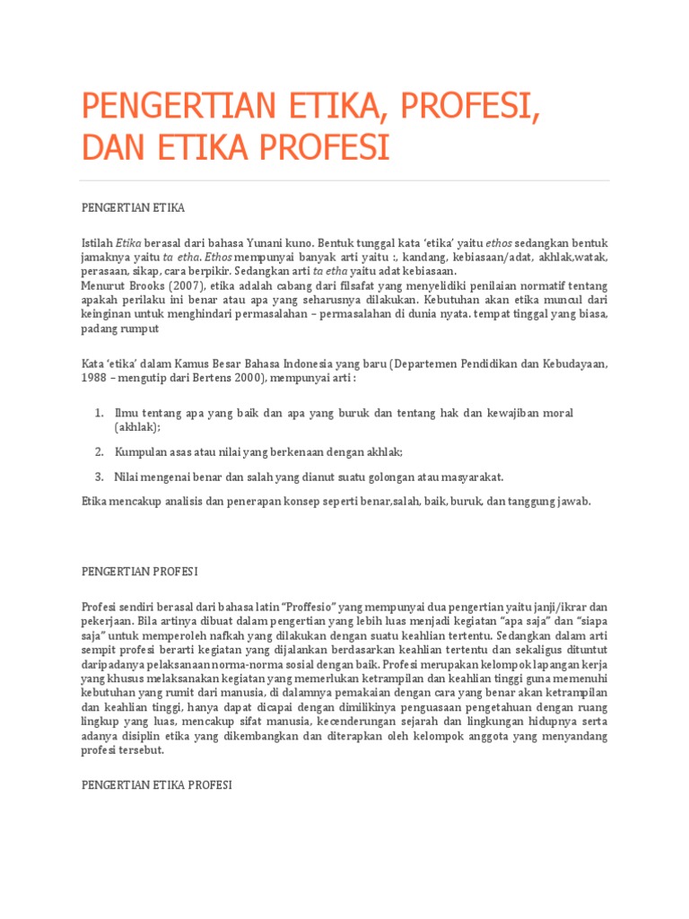 Pengertian Etika Dan Profesi Serta Kode Etik Dalam Profesi It