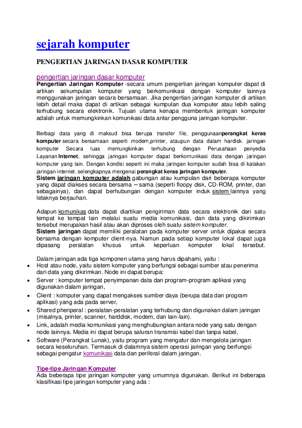 Doc Sejarah Komputer Pengertian Jaringan Dasar Muh Iqbal