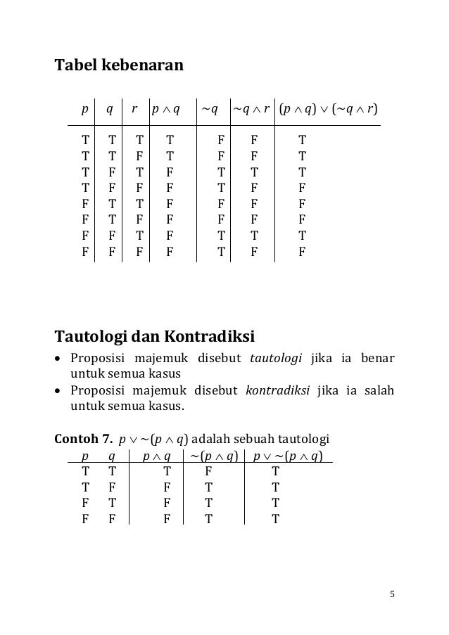 Rumus Logika Matematika Dan Tabel Kebenaran