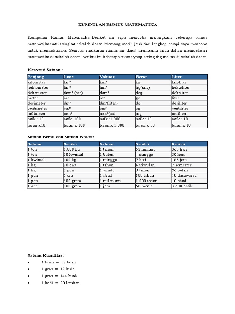 Kumpulan Rumus Matematika Sd Kelas 5