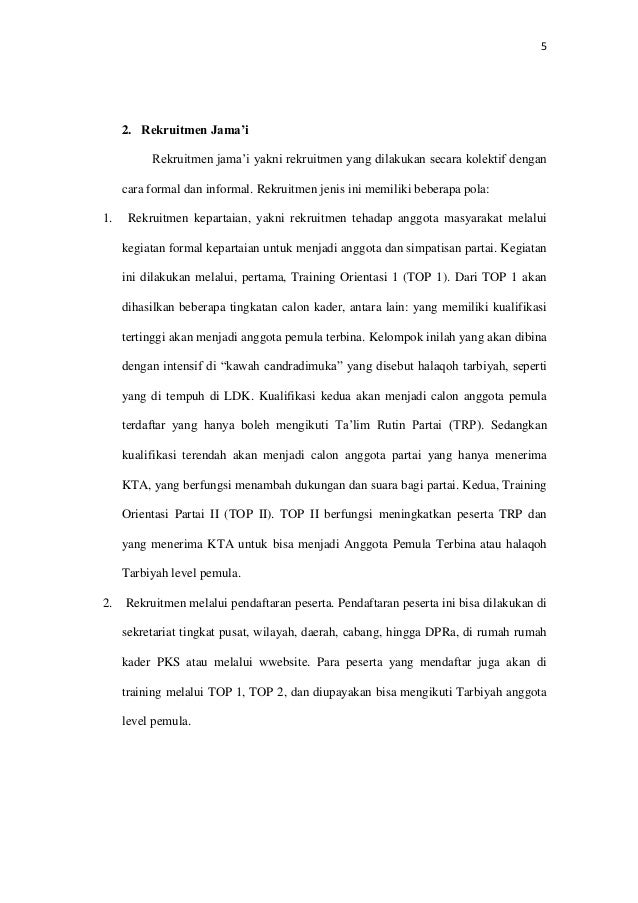 Membuat Kader Bekerja Dinamika Internal Partai Keadilan Sejahtera