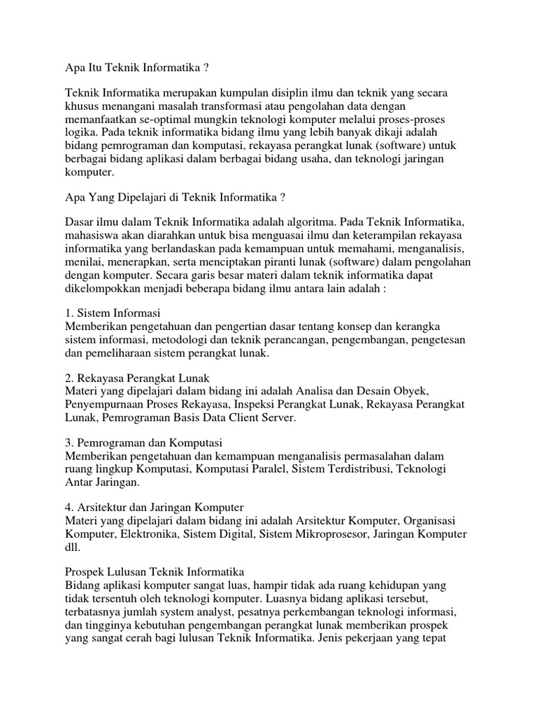 Doc Apa Itu Teknik Informatika Teknik Larantuka Academia Edu