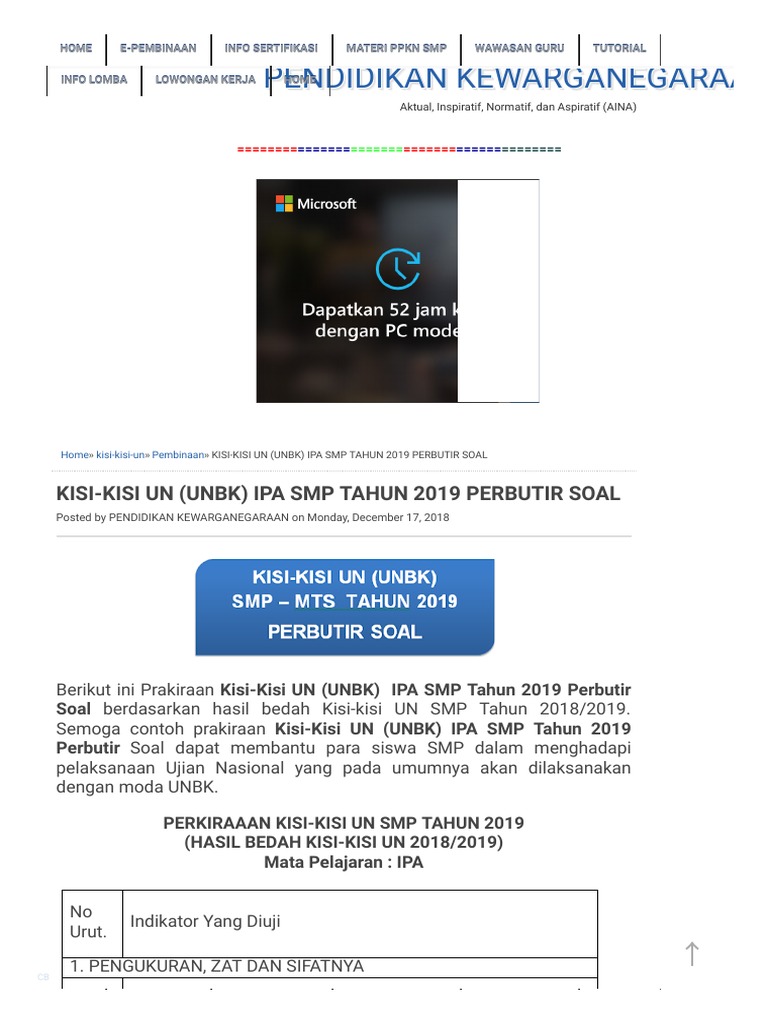 Kisi Kisi Un Unbk Ipa Smp Tahun 2019 Perbutir Soal Pendidikan