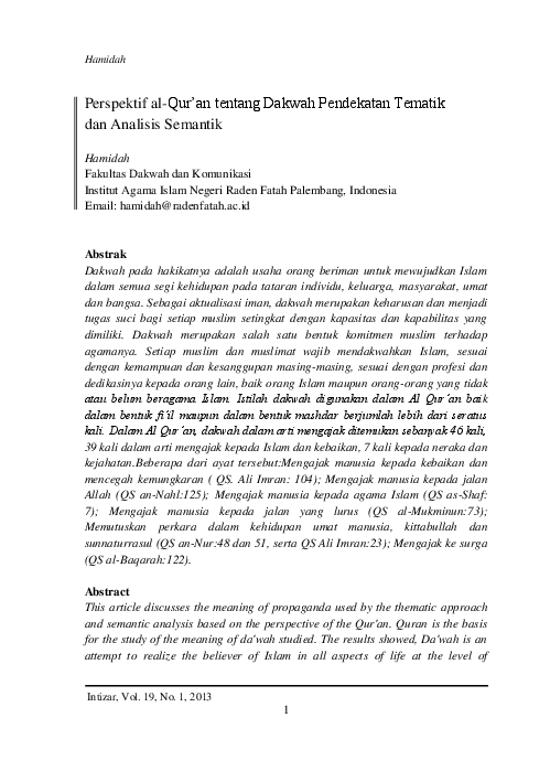 Pdf Perspektif Al Qur An Tentang Dakwah Pendekatan Tematik Dan