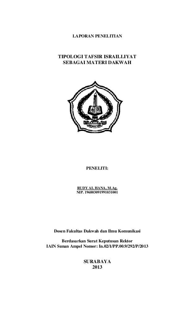 Pdf Tipologi Tafsir Israilliyat Sebagai Materi Dakwah Peneliti