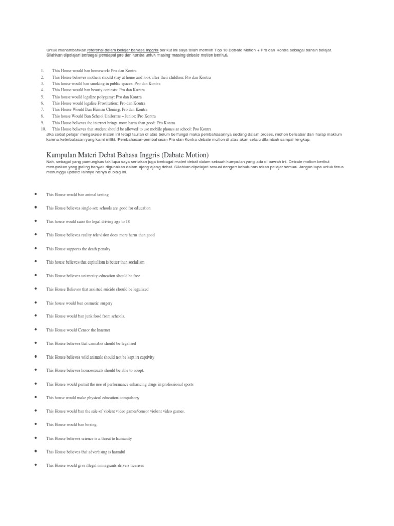 Kumpulan Materi Debat Bahasa Inggris Pro Dan Kontra Tugas