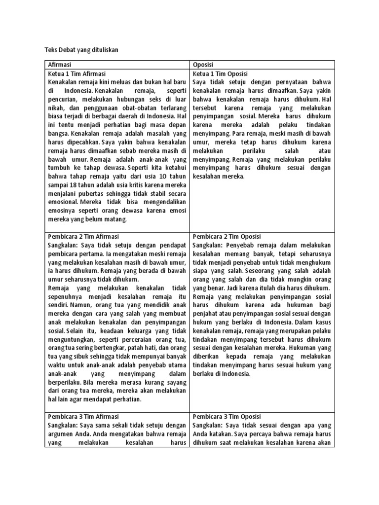 Teks Debat Materi Bahasa Indonesia Kelas X Kurikulum 2013 Revisi