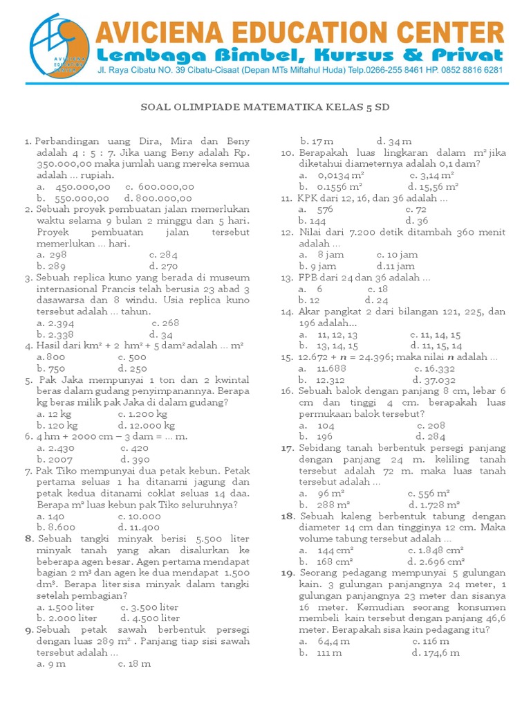 Soal Olimpiade Matematika Sd Tahun 2010 Soalujian Net