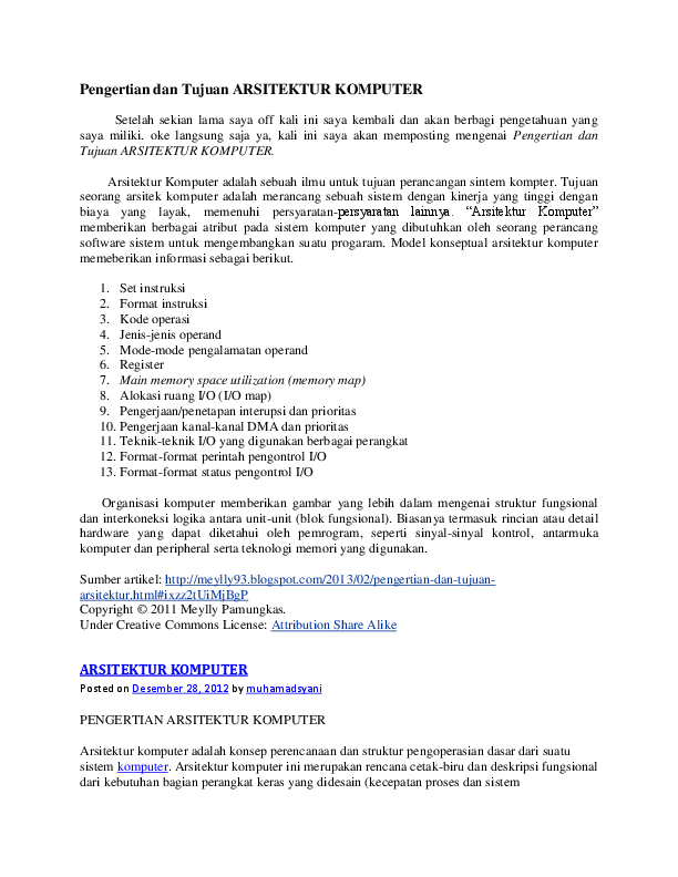 Doc Pengertian Dan Tujuan Arsitektur Komputer Ronald Duka
