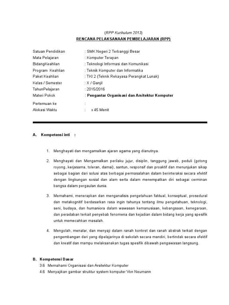 Arsitektur Dan Organisasi Komputer Kode Mata Kuliah Hari Rabu