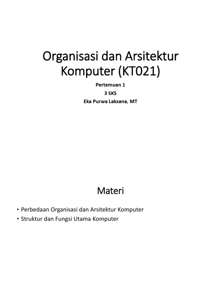Perkuliahan 1 Organisasi Dan Arsitektur Komputer