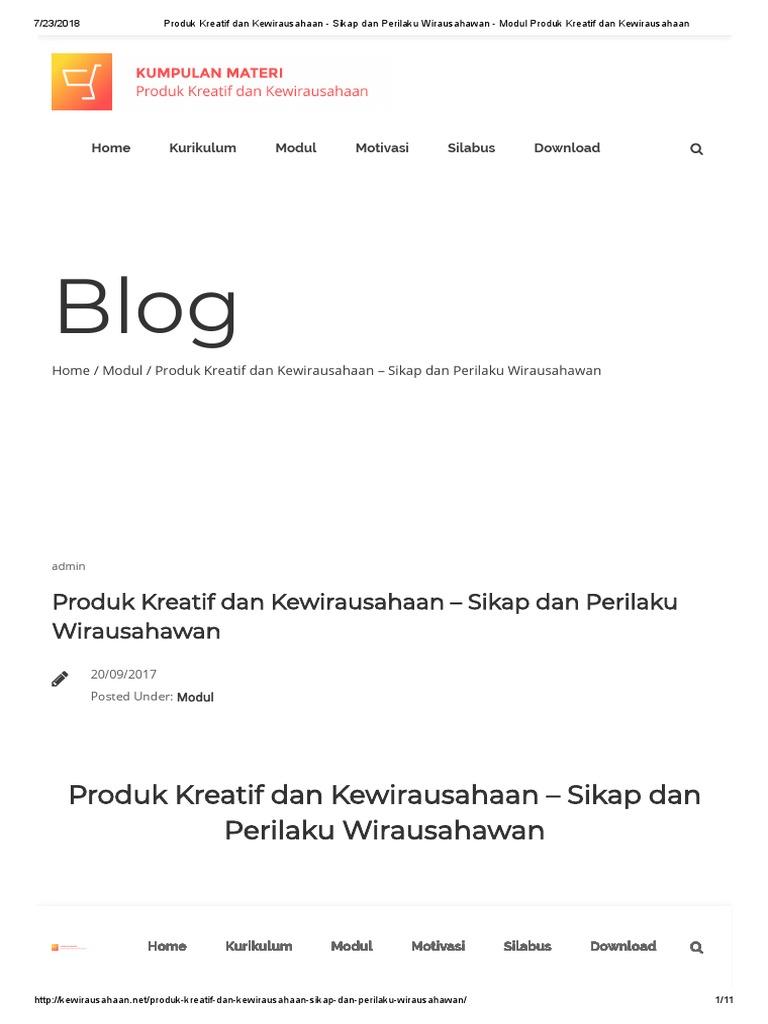 Produk Kreatif Dan Kewirausahaan Sikap Dan Perilaku Wirausahawan