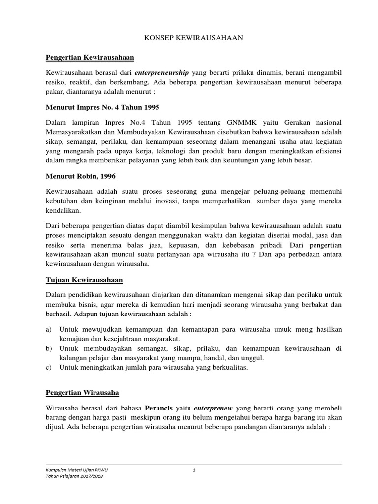 Kata pengantar dan daftar isi bab 1 pengertian wirausaha bab 2 finansial bab 3 sikap dan profil wiraswasta pengusaha bab 4 ide kreativitas dan inovasi bab 5 profil usaha. Materi kewirausahaan kelas xi sebelas smk peluang dan risiko a. Kumpulan materi kuliah semua catatan tugas dan rangkuman selama mengikuti perkuliahan.