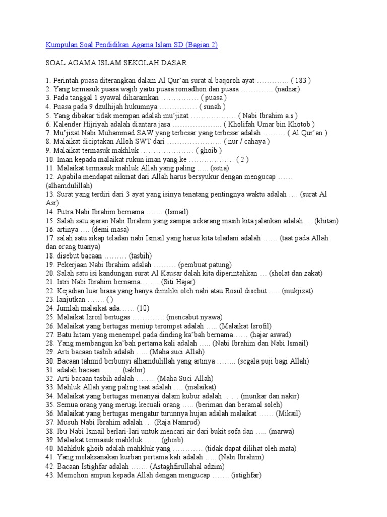 Kumpulan Soal Pendidikan Agama Islam Sd