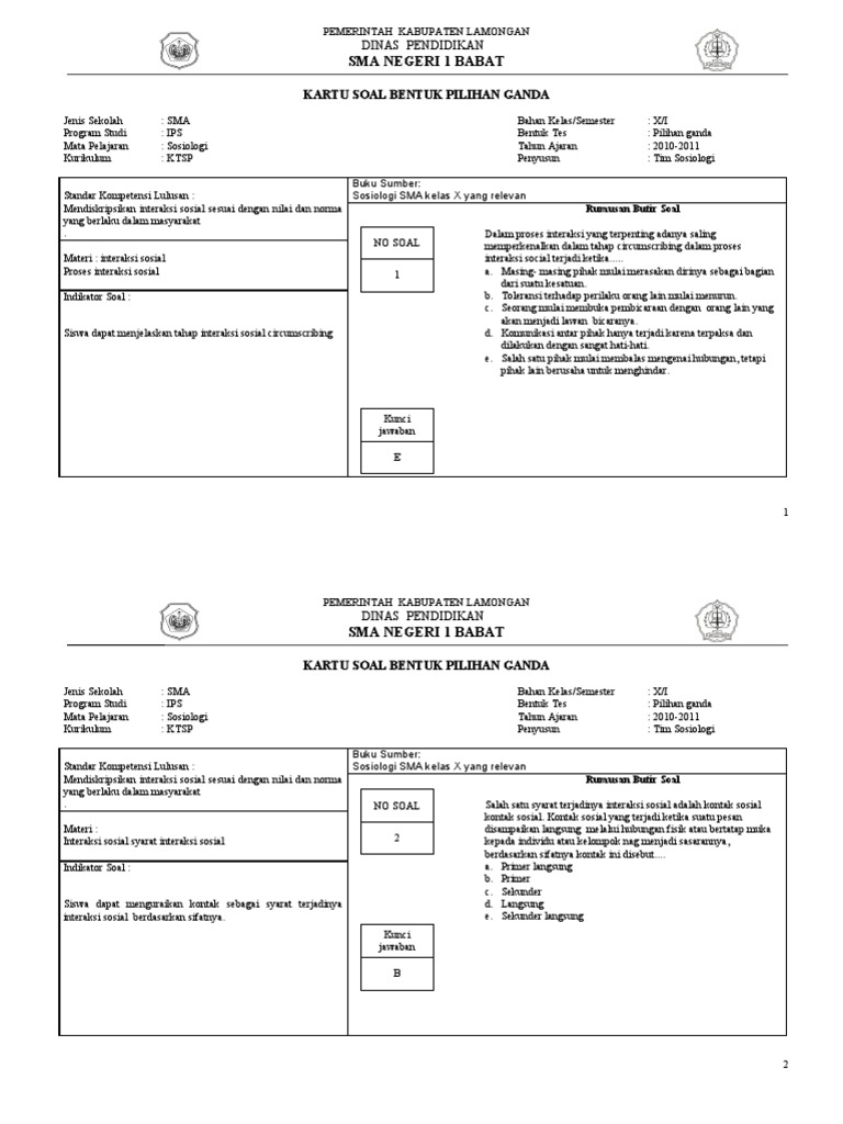Soal Latihan Un Dan Usbn Sosologi Sma Tahun 2018 2019 Pendidikan