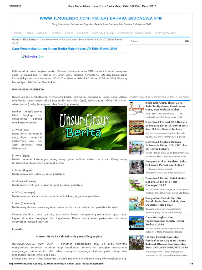 Cara Menentukan Unsur Unsur Berita Materi Kelas Viii Edisi Revisi 2016