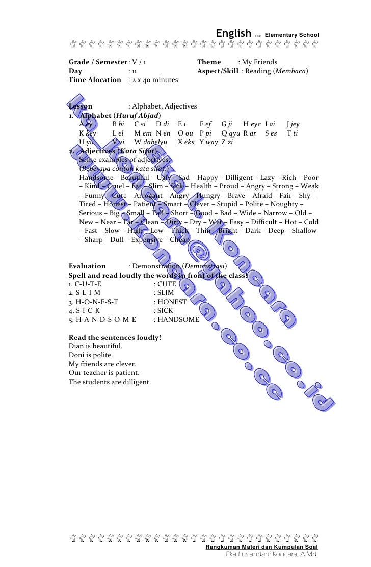 Rangkuman Materi Pelajaran Bahasa Inggris Kelas 5 Sd Tratado De