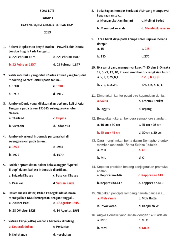 Soal Rangking 1 Penggalang Atau Soal Olimpiade Pramuka Beserta Kunci