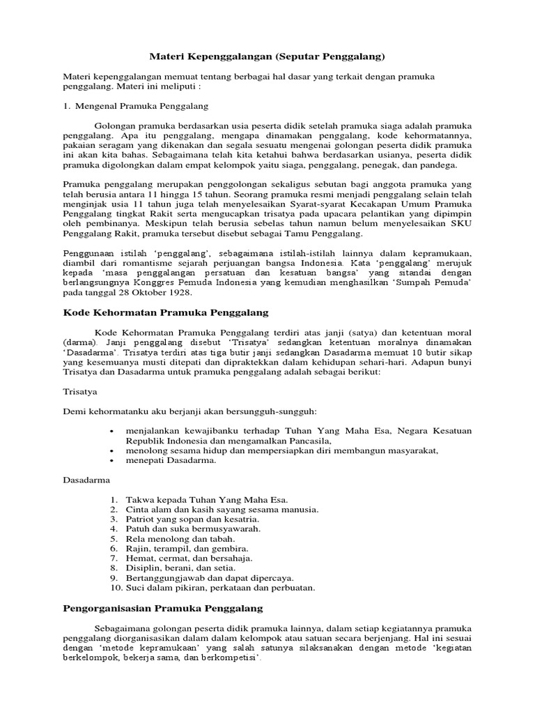 Apakah itu materi pramuka latihan yang ada di siaga penggalang penegak ataupun pandega. 1 2 0 3 1. Materi pramuka penggalang secara lengkap ini adalah berbagai materi seputar pramuka dan kepramukaan yang terkait dengan pramuka penggalang.